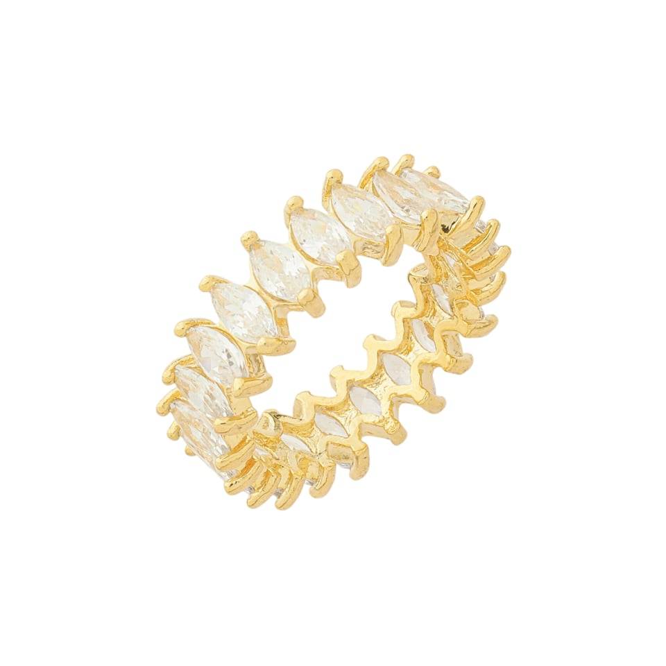Anel pedra 6x3mm navete zircônia BANHO DE OURO