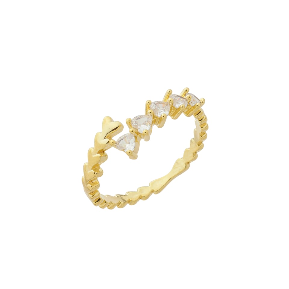 Anel coração pedra 3x3mm zircônia, BANHO DE OURO