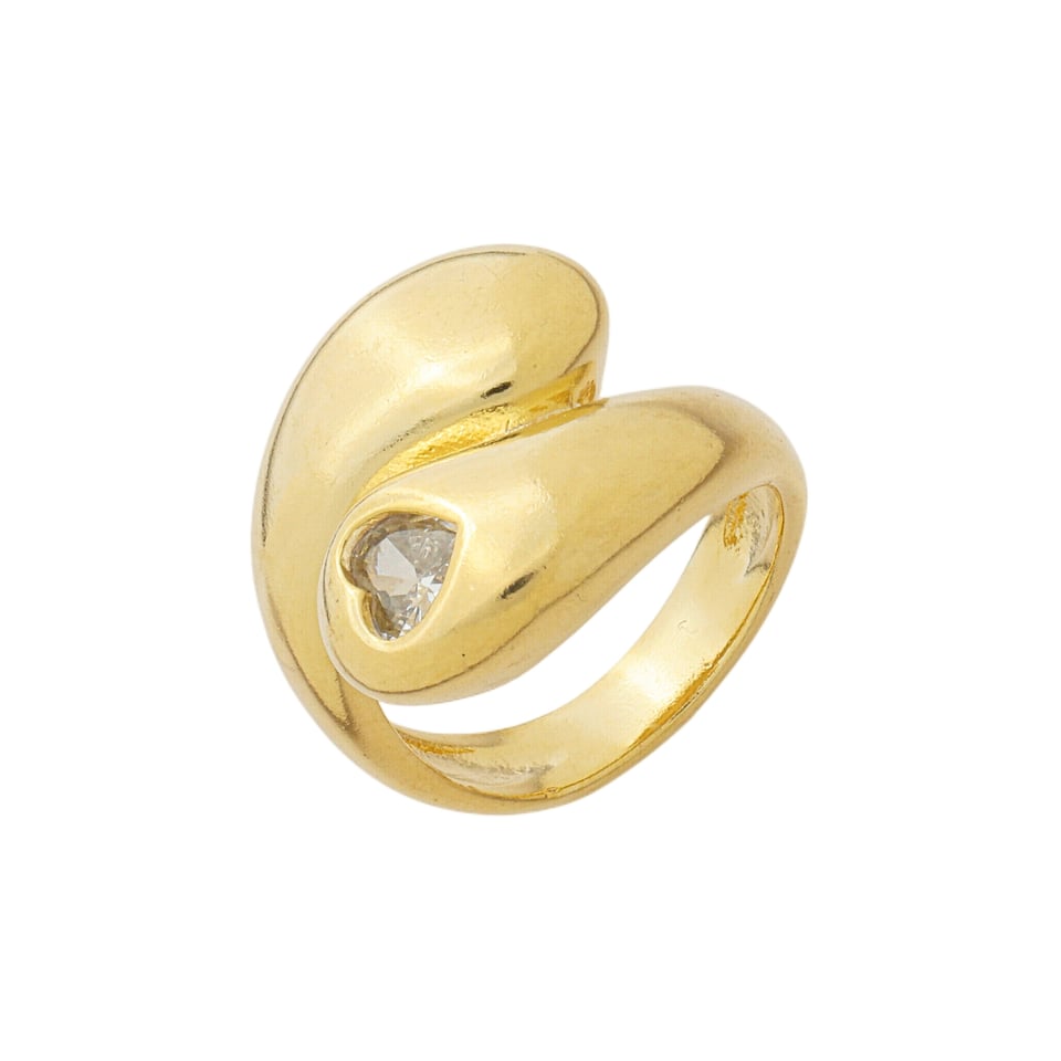 Anel orgânico liso com coração 4mm zircônia, medindo 1,6cm parte superior BANHO DE OURO
