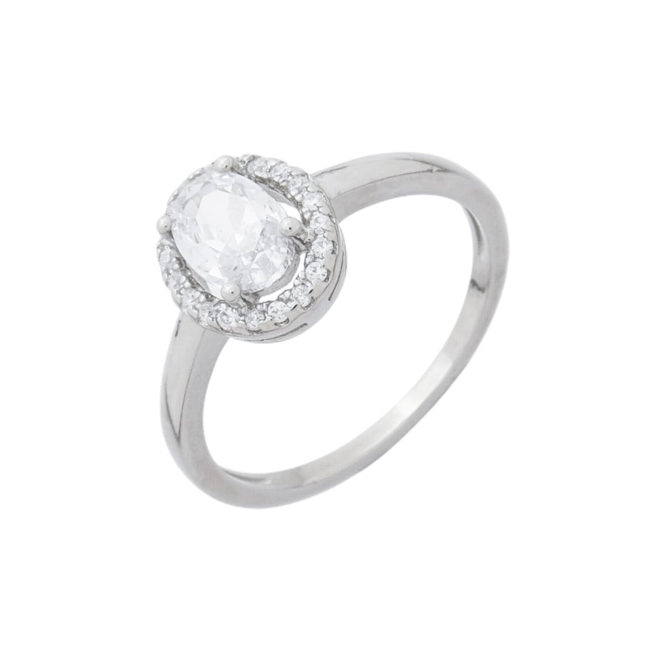 Anel pedra 7x5mm oval zircônia e em volta pedras 1mm zircônia BANHO DE RÓDIO