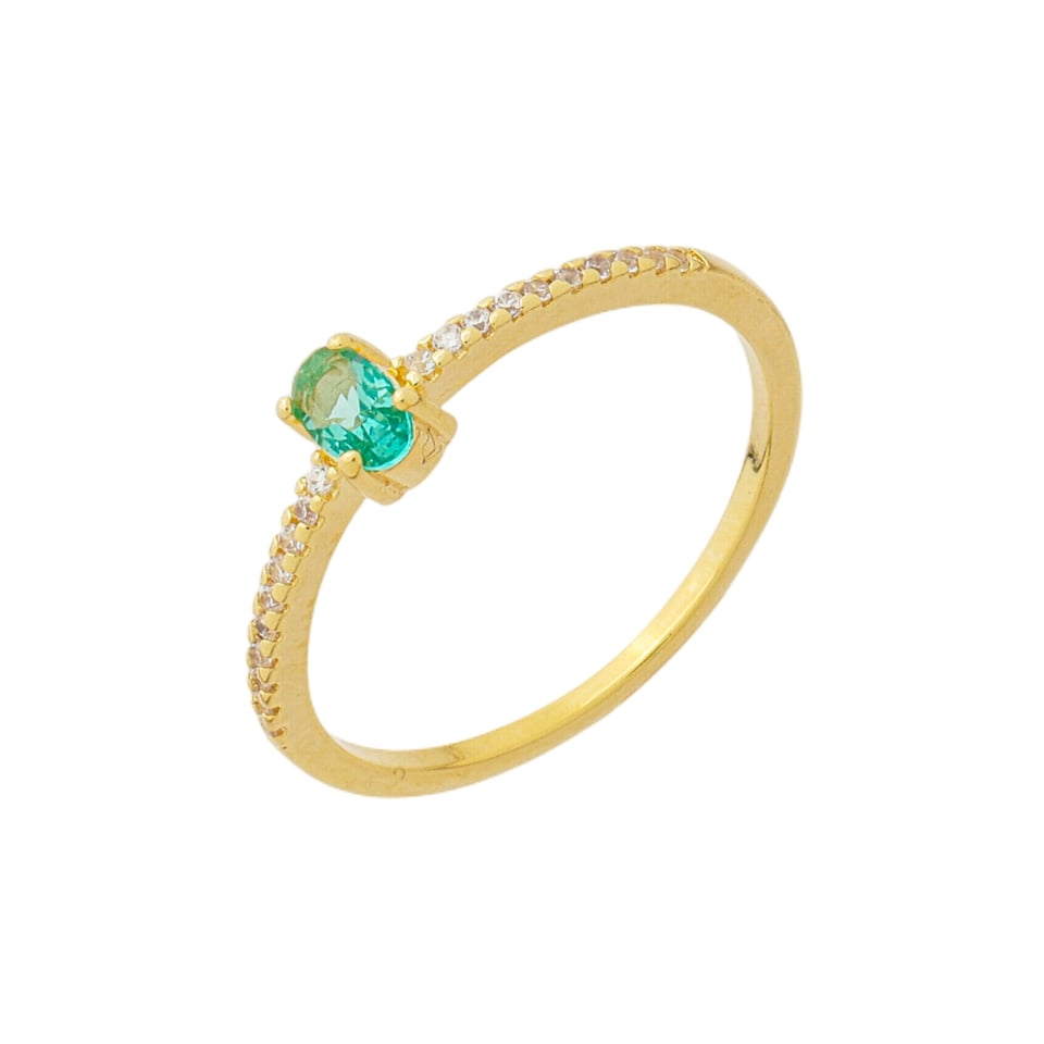 Anel pedra oval 5x3mm zircônia verde turmalina e em volta pedras 1mm zircônia BANHO DE OURO