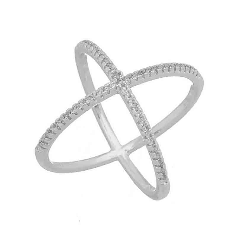 Anel réplica com pedras 1mm zircônia em formato X, medindo 1,5X2,0cm BANHO DE RÓDIO