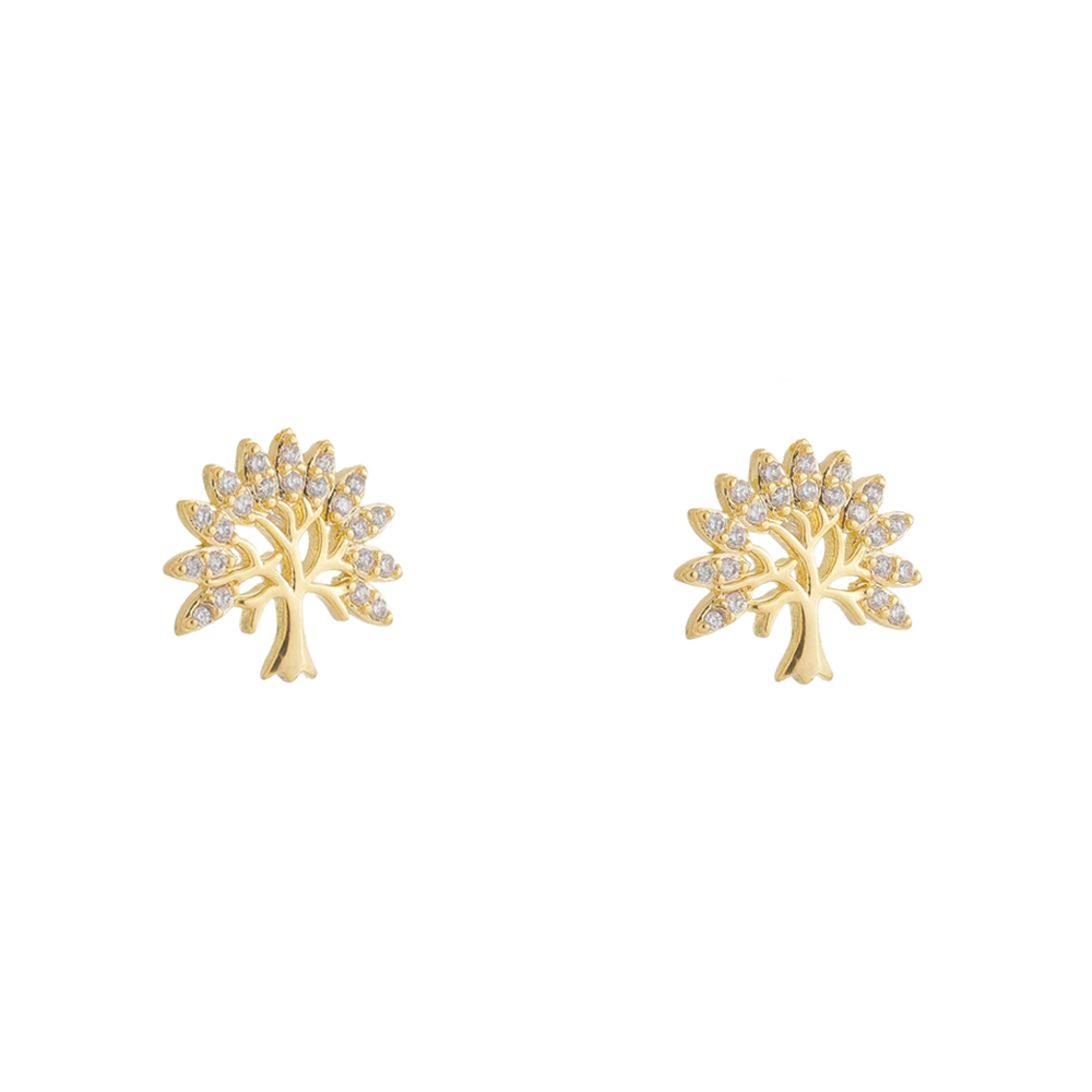 Brinco árvore da vida com pedras 1,0mm zircônia, medindo 1,3x1,4cm BANHO DE OURO
