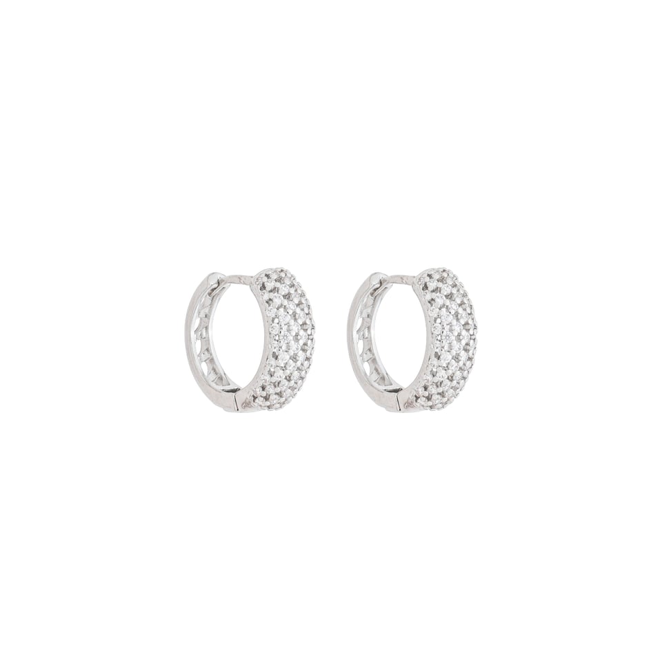 Brinco argola click com pedras 2mm zircônia cravejação inglesa, medindo 1,5cm de diâmetro BANHO DE RÓDIO