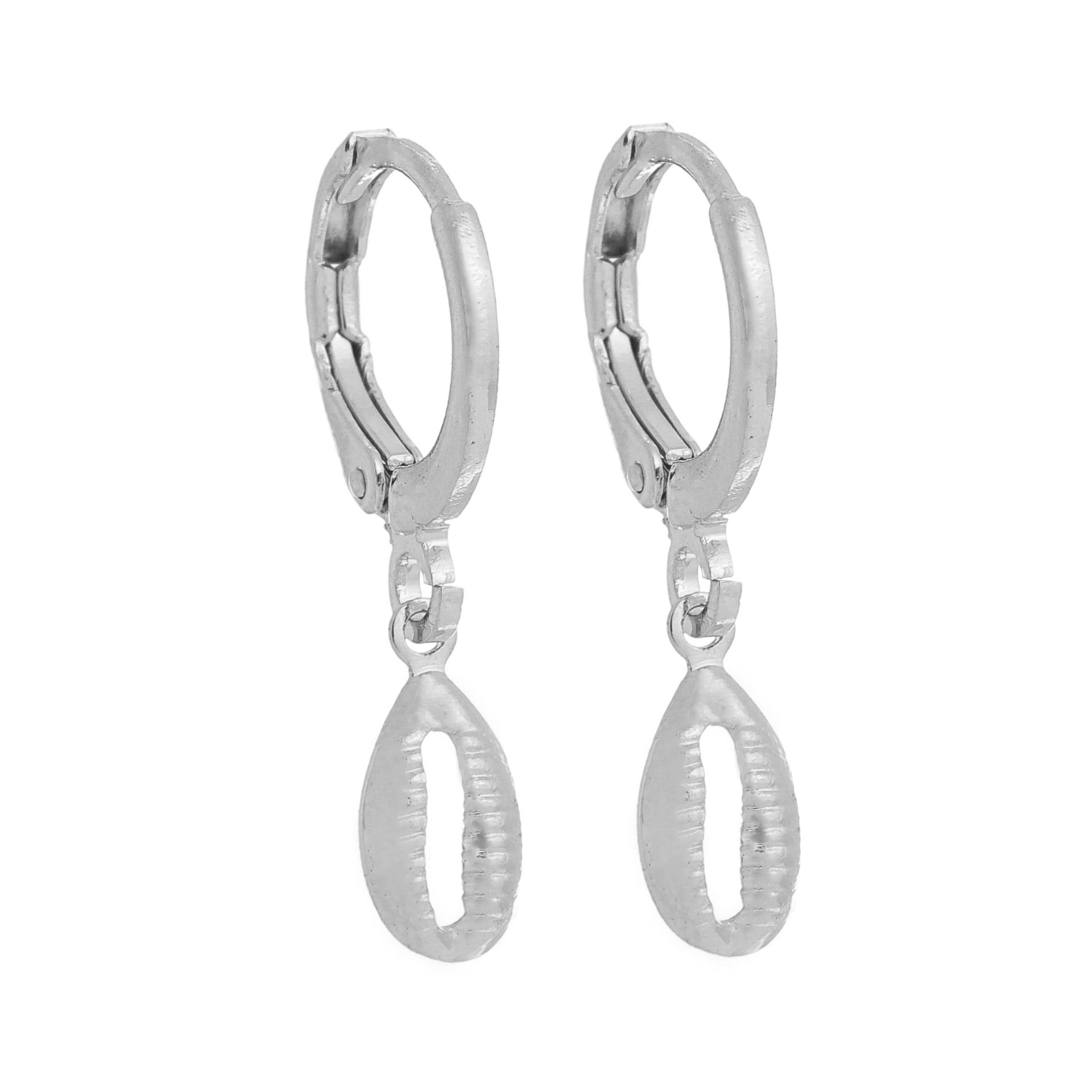 Brinco argola com pingente búzios, comprimento de 2,5cm BANHO DE RÓDIO