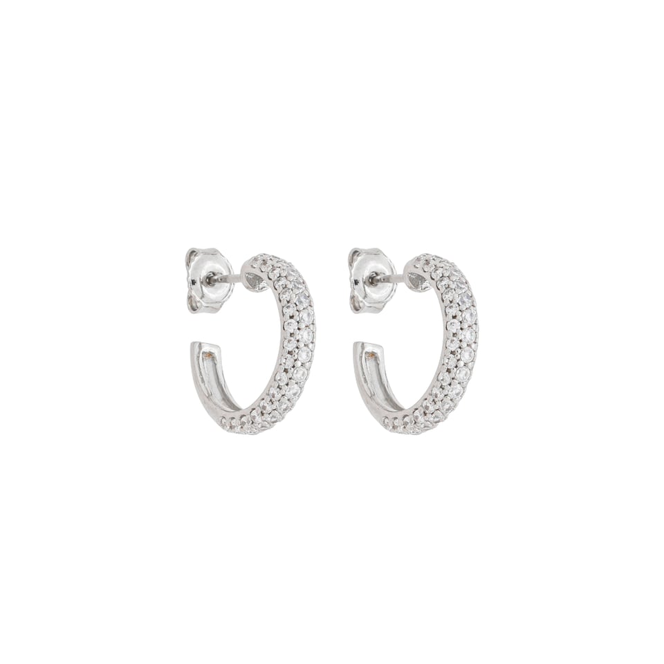 Brinco argola 3 fileiras pedra 1mm zircônia, medindo 1,6cm de diâmetro BANHO DE RÓDIO