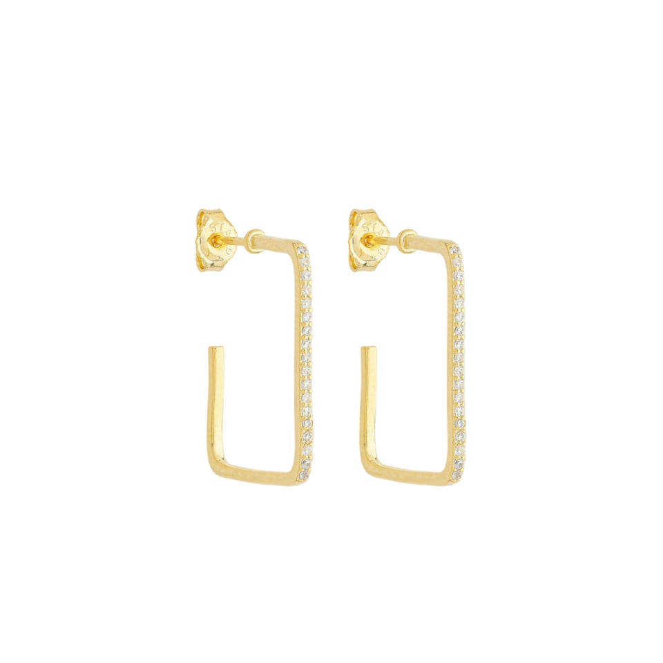 Brinco argola retangular com pedras 1,0mm zircônia, medindo 2,2x1,8cm BANHO DE OURO