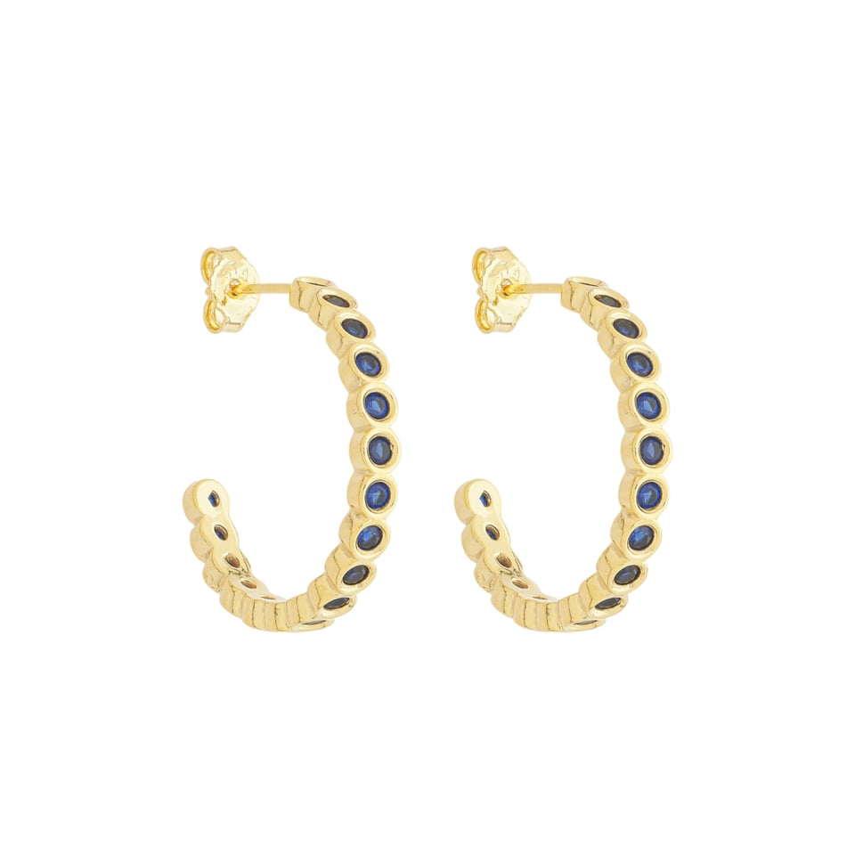 Brinco argola com pedra 2,5mm zircônia azul, medindo 2,5cm de diâmetro BANHO DE OURO