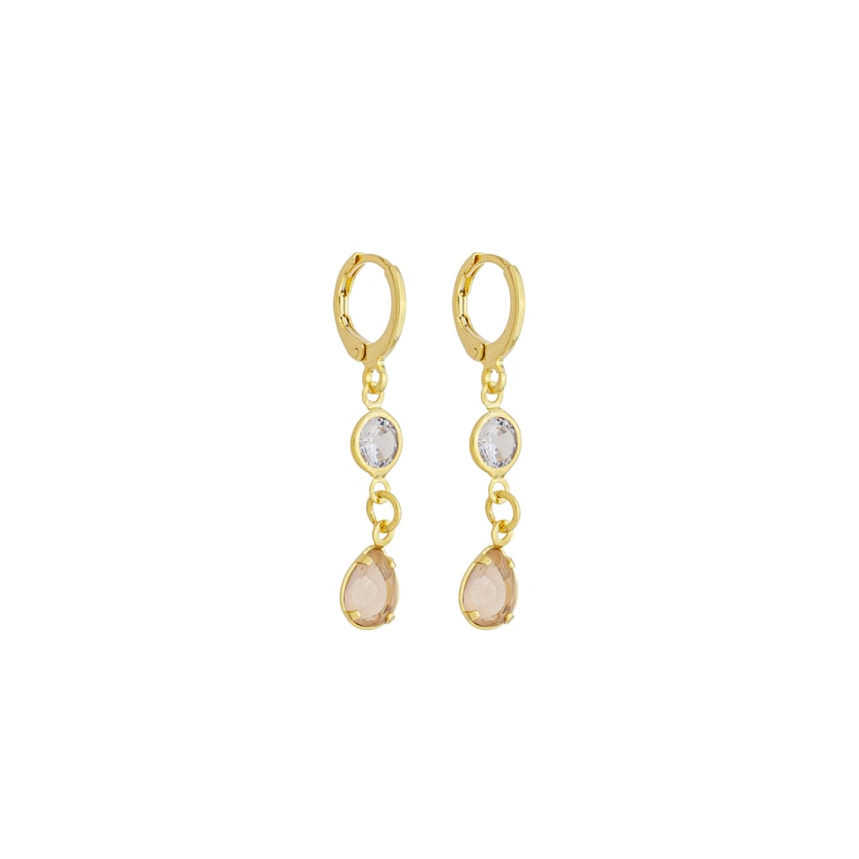 Brinco argola com pedra 6mm zircônia e gota 9x7mm zircônia champanhe, medindo 4cm de comprimento BANHO DE OURO