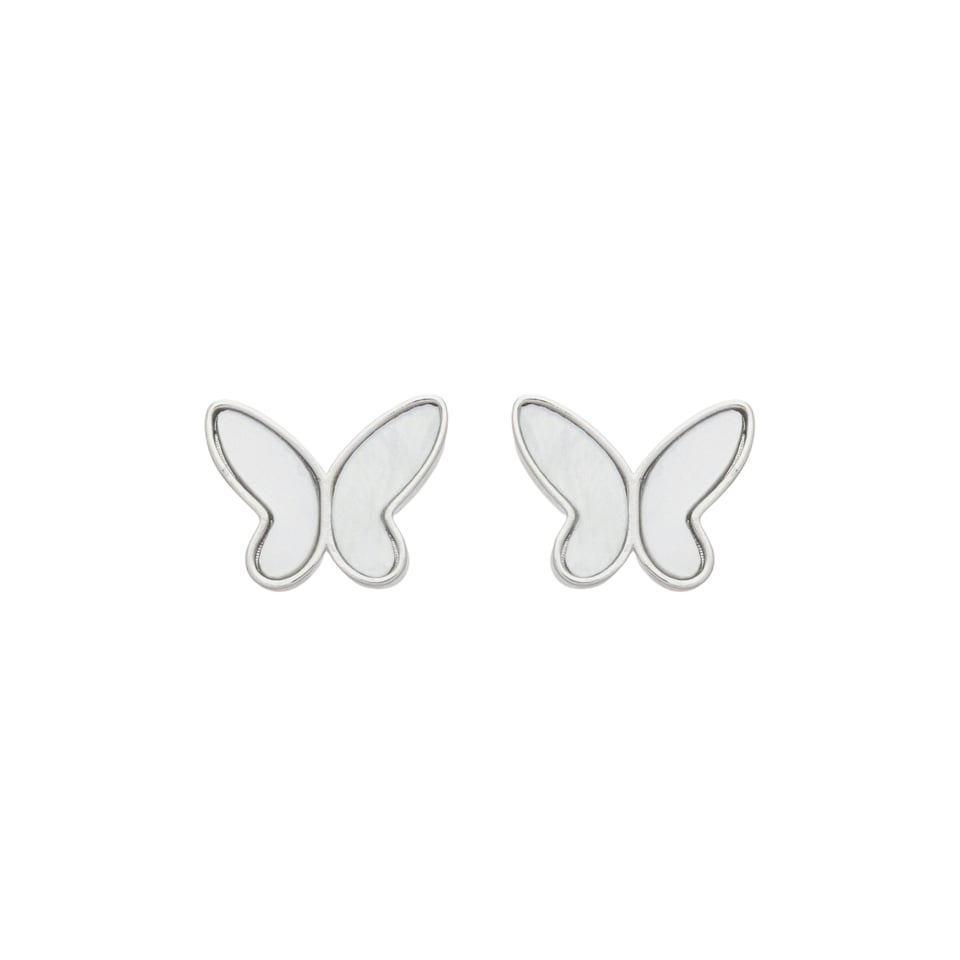 Brinco fixo borboleta madrepérola, medindo 1,2x1,4cm BANHO DE RÓDIO