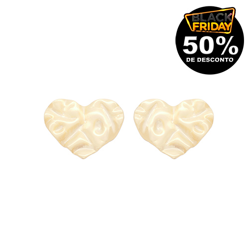 Brinco coração chapa amassada, 2,0x2,7cm BANHO DE OURO