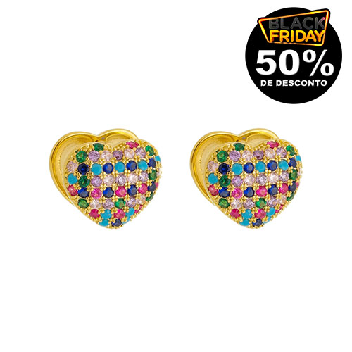 Brinco argola click coração com pedras 2mm zircônia , medindo 1,5x1,6cm BANHO DE OURO