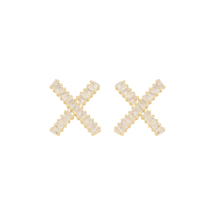 Brinco X com pedra 3x2mm zircônia, medindo 1,8x1,6cm BANHO DE OURO