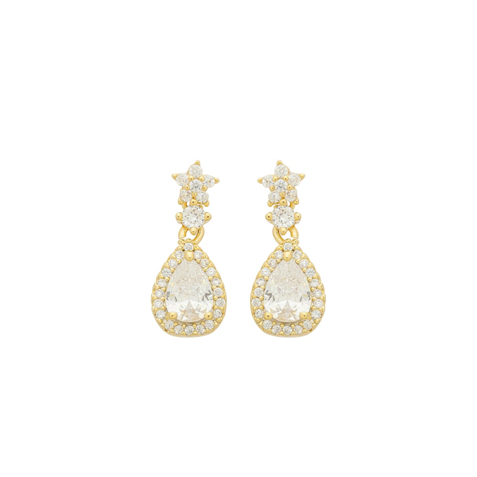 Brinco pedra 2,50mm, 1,50mm, 1,00mm redonda, 7x5mm gota zircônia, medindo 1,8x0,8cm BANHO DE OURO