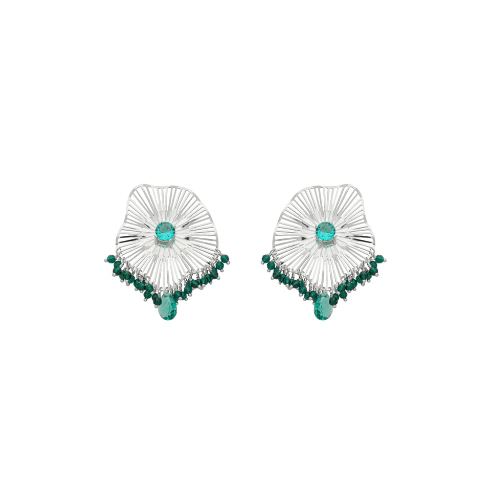 Brinco pingente com pedra 6,0mm redonda no centro, pedra 9x7mm gota zircônia, pedras 3,0mm cristal, medindo 4,8x3,5cm BANHO DE RÓDIO
