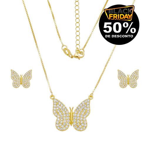 Conjunto borboleta pedras zircônia - 1101028