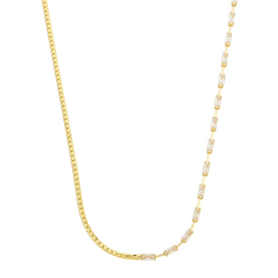 Corrente chocker malha fita 1,7mm,pedras 4x2mm baguete zircônia, comprimento 38cm +6cm de extensor BANHO DE OURO
