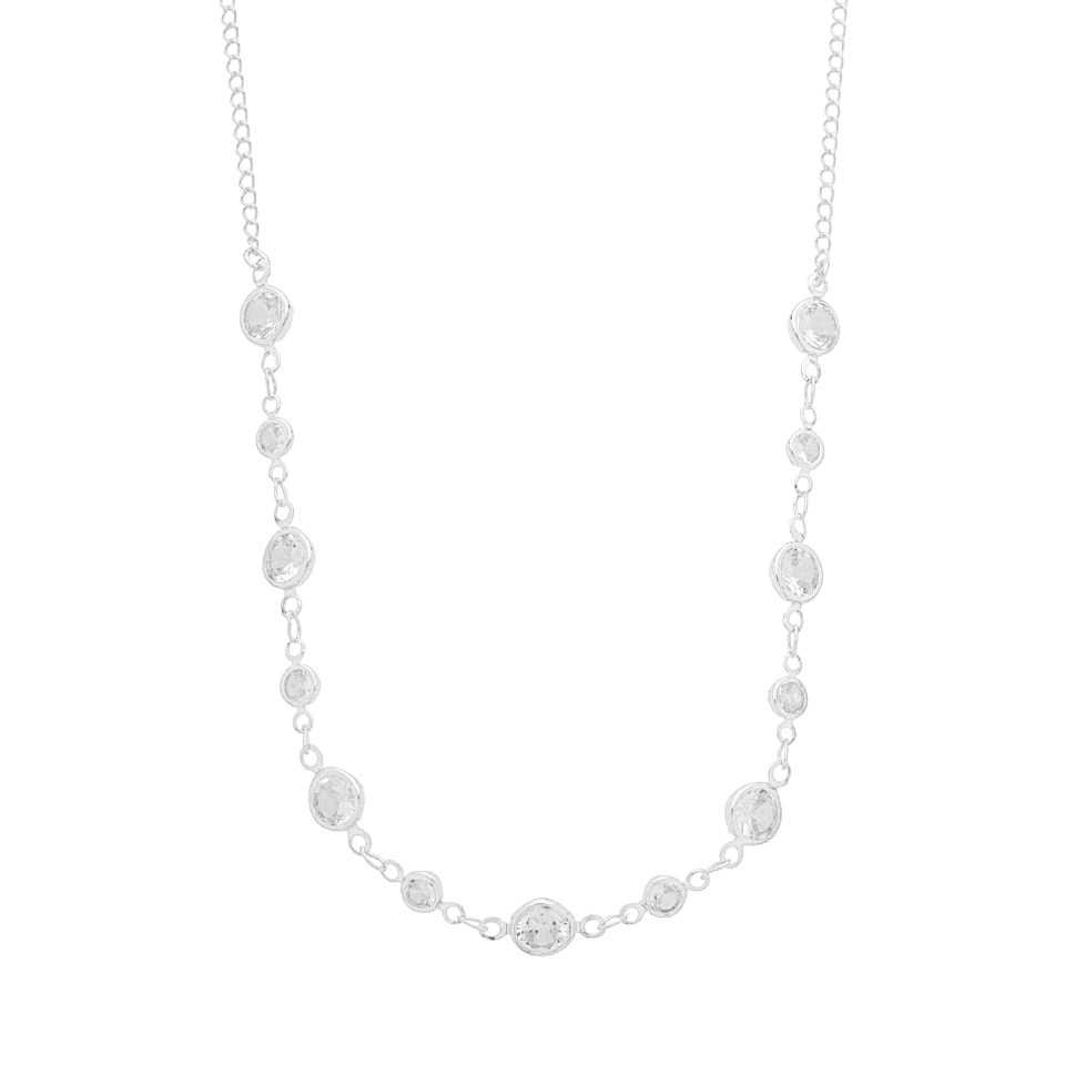 Corrente choker malha elos iguais 1,8mm com pedras 5mm e 3mm zircônia, comprimento 35cm + 10cm de extensor BANHO DE RÓDIO
