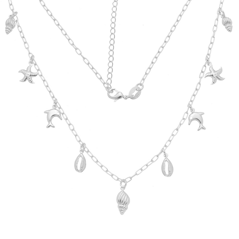 Corrente com concha, búzios e golfinho - 0306804