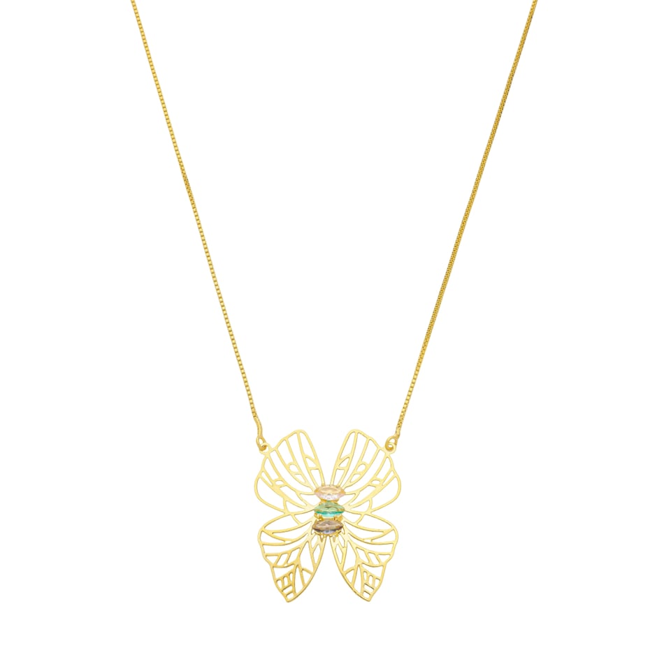 Corrente pingente borboleta zircônia - 0306810 - Cores