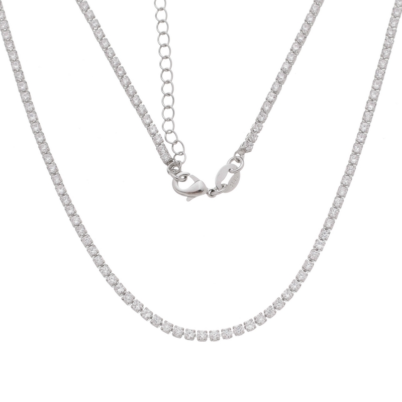 Corrente riviera com pedras 2mm zircônia, comprimento 40cm + 5,0cm de extensor BANHO DE RÓDIO