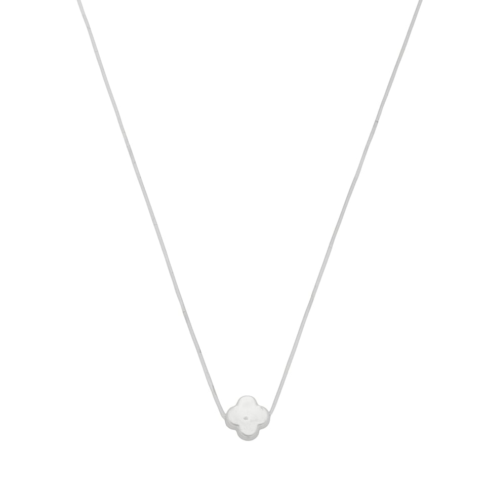 Corrente fio silicone com pingente trevo madrepérola, medindo 0,7x0,7cm, comprimento 40+5cm de extensor BANHO DE OURO