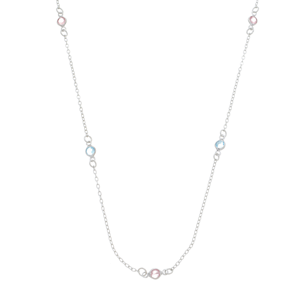Corrente Tiffany malha cadeado 1,6mm com pedra 4,0mm zircônia colorida, comprimento de 50cm + 5cm de extensor BANHO DE RÓDIO