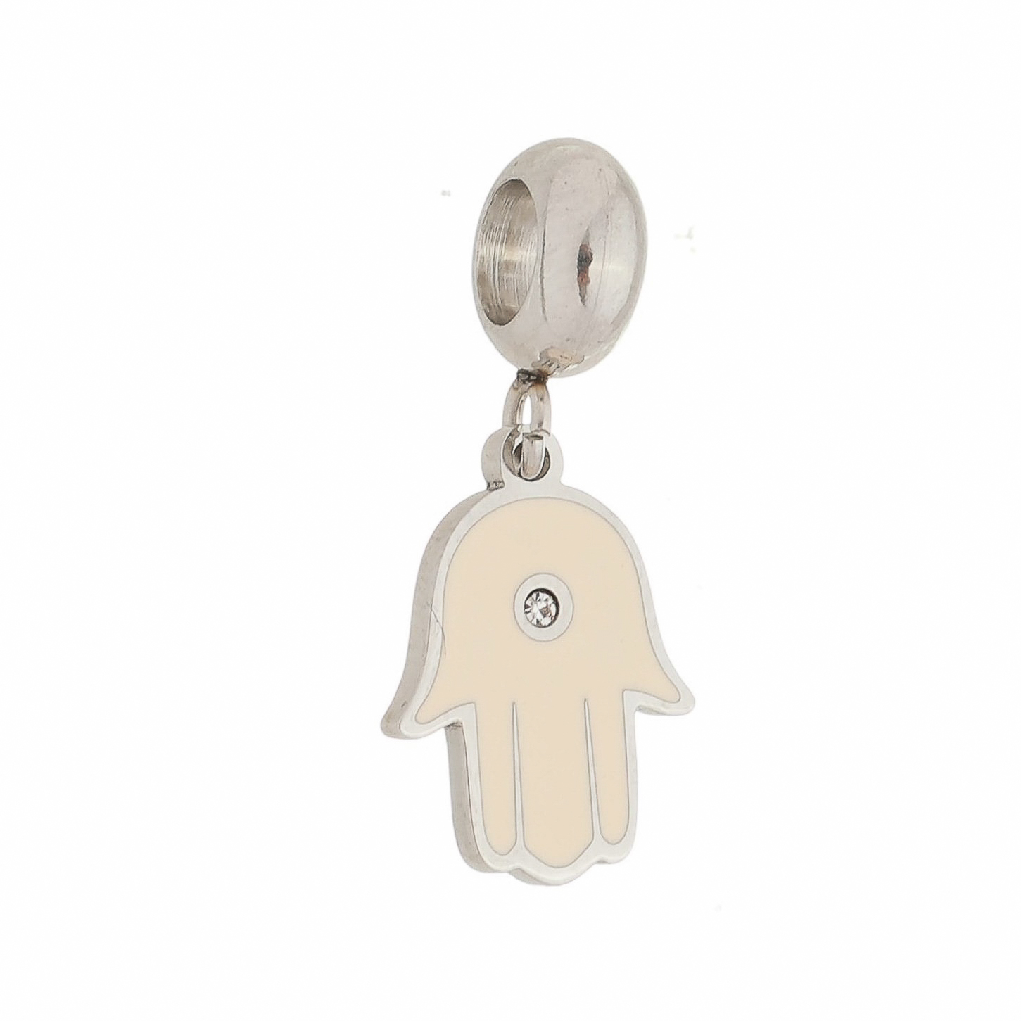 Pingente berloque para pulseira pandora mão de Fátima resinada rosa claro pedra 1mm zircônia, medindo 1,5x1,1cm AÇO INOX