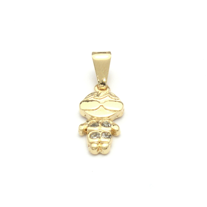 Pingente menino com 4 pedras strass, medindo 1,6x0,8cm e contra argola 7,3x3,5mm Banho de Ouro