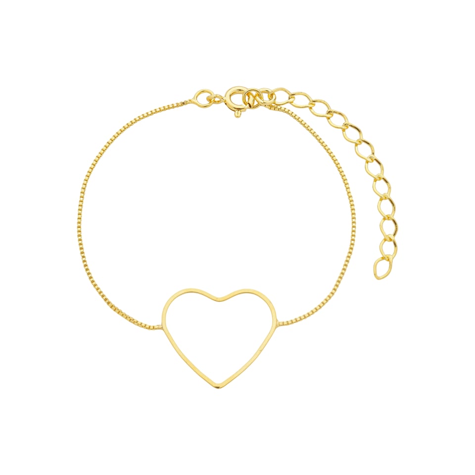 Pulseira veneziana com coração 20x20mm vazado, medindo 15cm + 5cm de extensor BANHO DE OURO