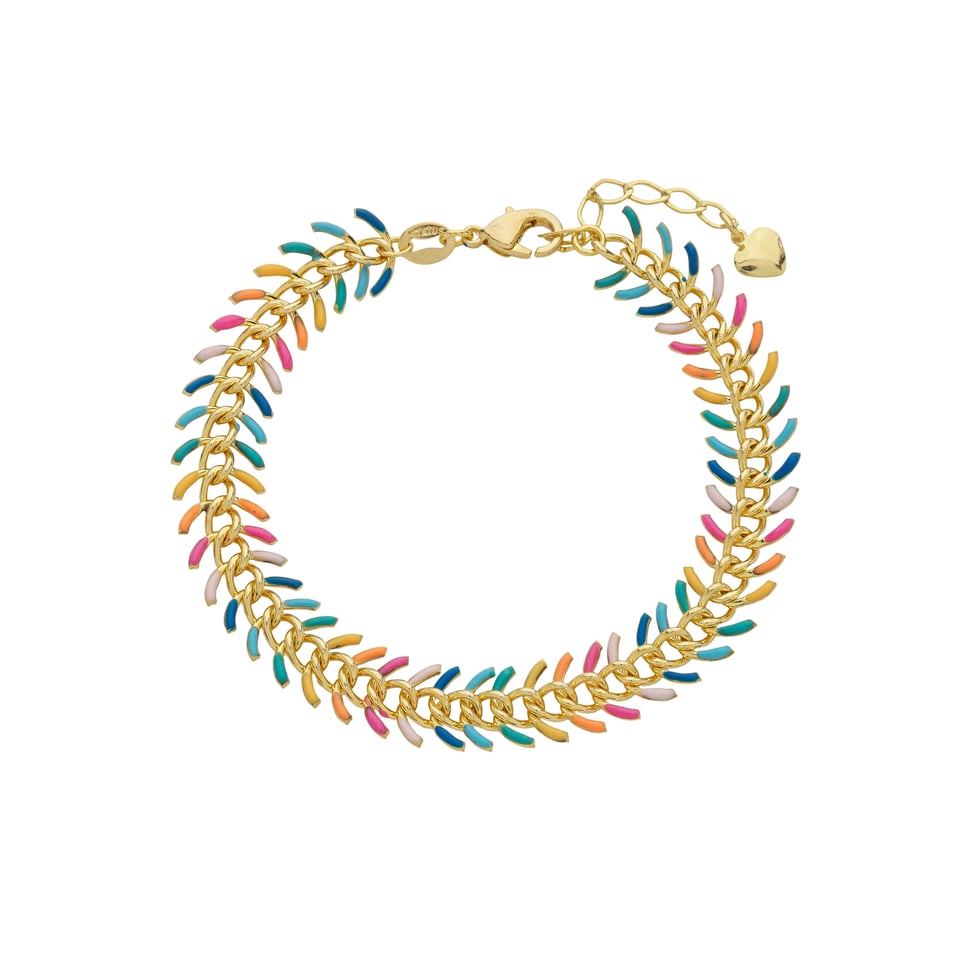 Pulseira folhas com resina colorida, comprimento 17cm + 3cm de extensor BANHO DE RÓDIO