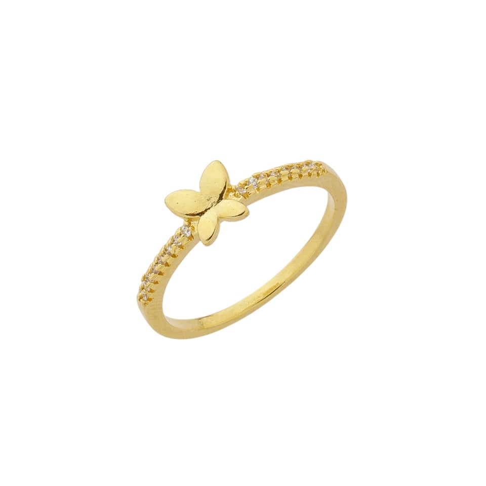 Anel borboleta lisa, lateral com pedra 1,0mm zircônia, parte superior medindo 5,8mm BANHO DE OURO