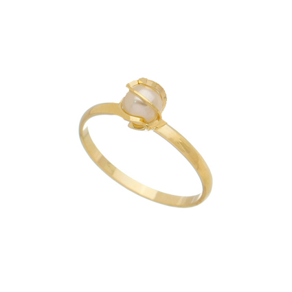 Anel pérola 5mm com fios em volta BANHO DE OURO