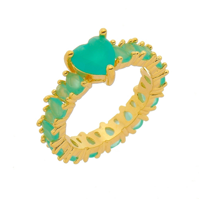 Anel com pedra 7x7mm coração e em volta pedras 4x3mm, 3x2mm gota natural BANHO DE OURO
