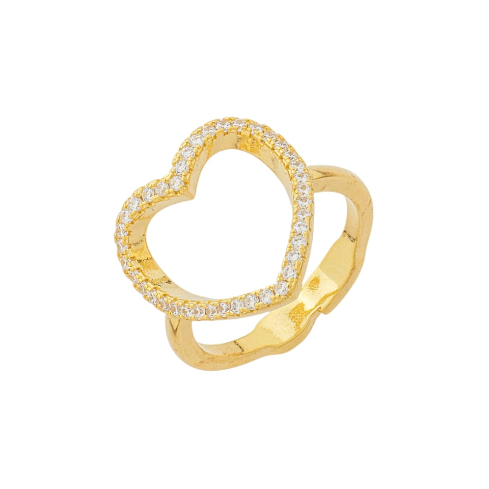 Anel coração vazado com pedras 1mm zircônia, parte superior medindo 1,7x1,7cm BANHO DE OURO