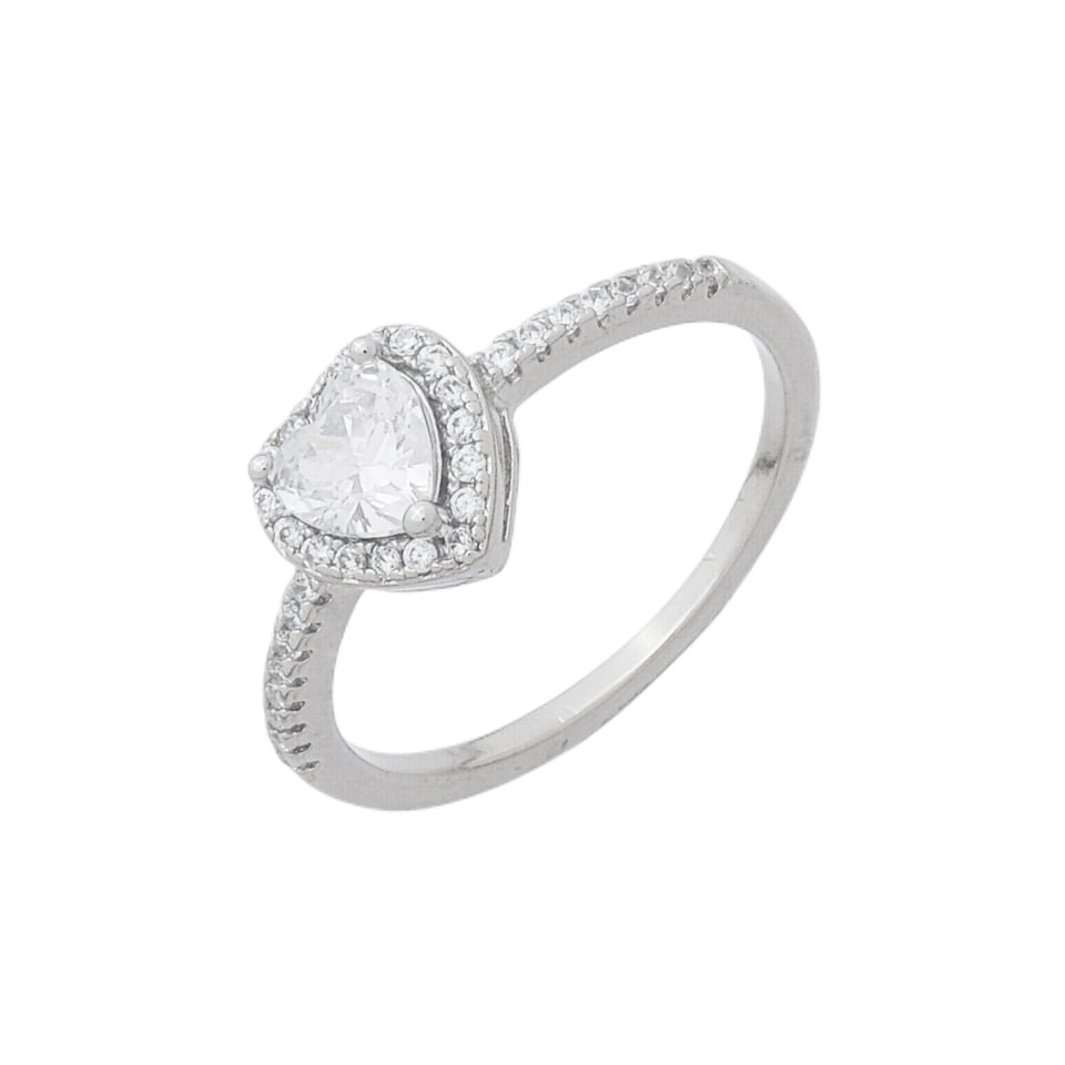 Anel pedra 5x5mm coração zircônia e em volta pedras 1mm zircônia BANHO DE RÓDIO