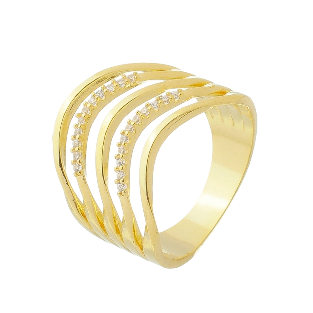 Anel 5 fios, lisos e pedras 1mm zircônia, parte superior medindo 1,3cm BANHO DE OURO