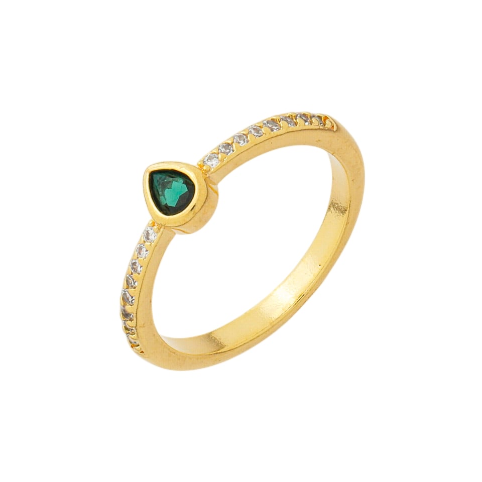 Anel gota 4x3mm zircônia verde esmeralda e em volta pedras 1mm zircônia BANHO DE OURO