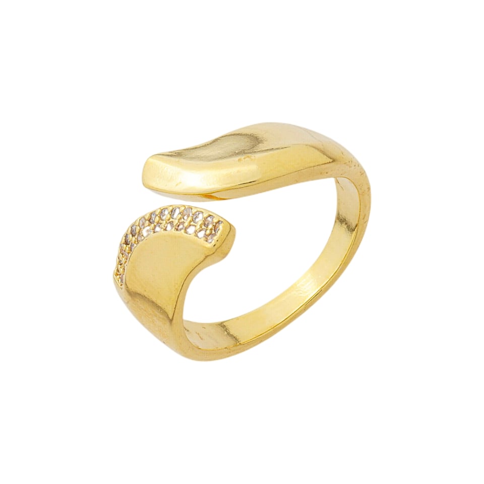 Anel orgânico liso com 2 fileiras de pedras 1mm zircônia BANHO DE OURO
