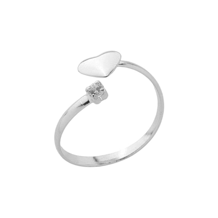 Anel coração chapa 6x6mm lisa e pedra 2mm zircônia BANHO RODIO