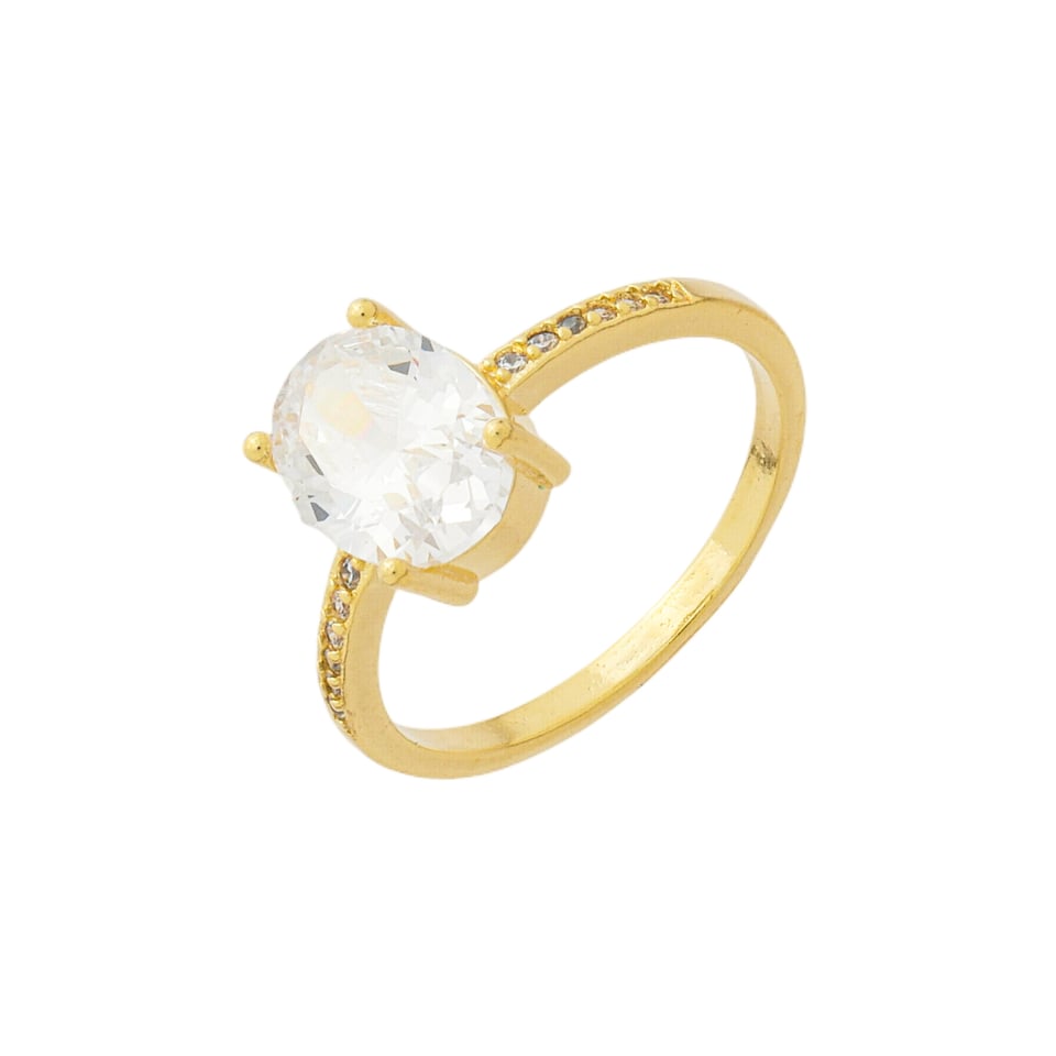 Anel pedra 9x7mm oval zircônia e em volta pedras 1mm zircônia BANHO DE OURO