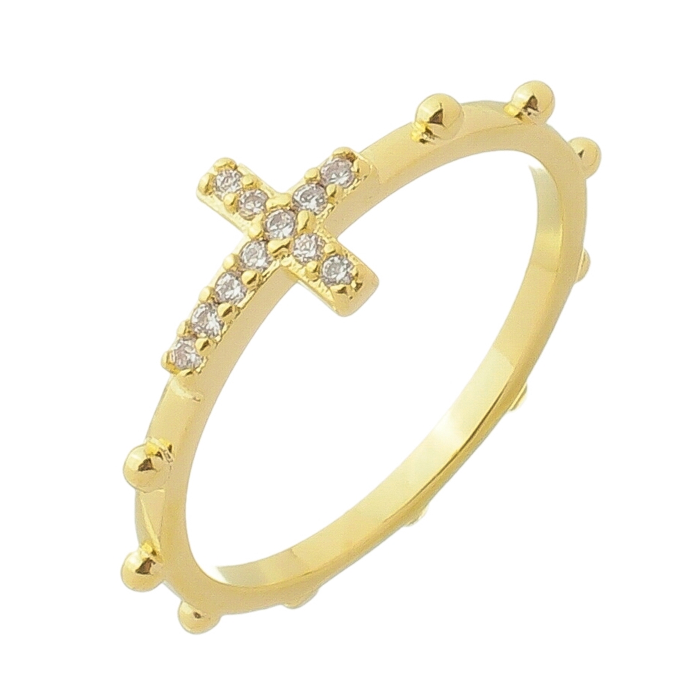 Anel terço com cruz pedras 1,50mm zircônia BANHO DE OURO