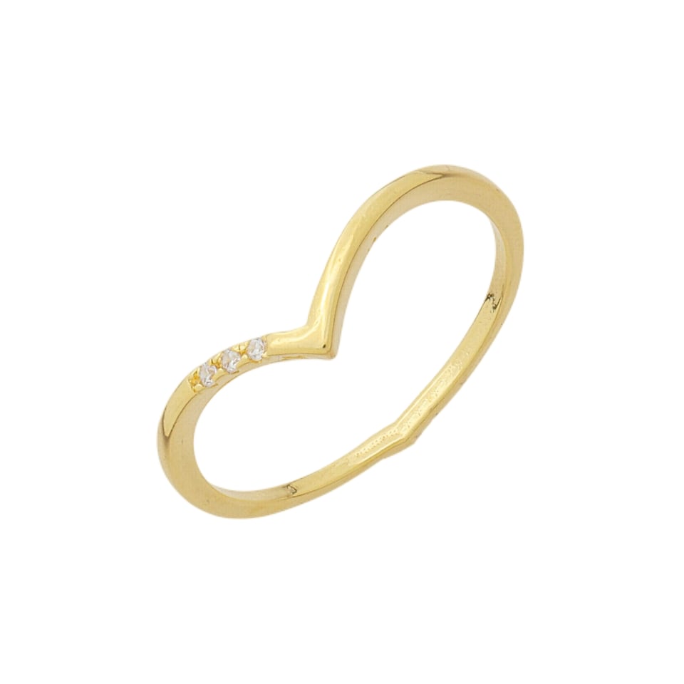 Anel V com pedras 1mm zircônia BANHO DE OURO