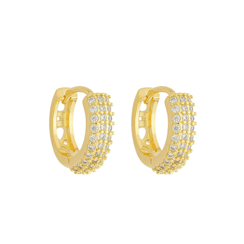 Brinco argola click 3 fileiras com pedras 1,0mm zircônia, medindo 1,5cm de diâmetro BANHO DE OURO