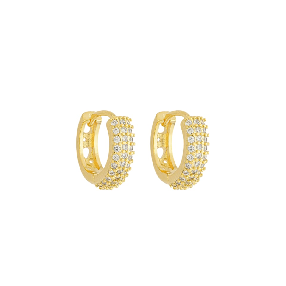 Brinco argola click 3 fileiras com pedras 1,0mm zircônia, medindo 1,3cm de diâmetro BANHO DE OURO