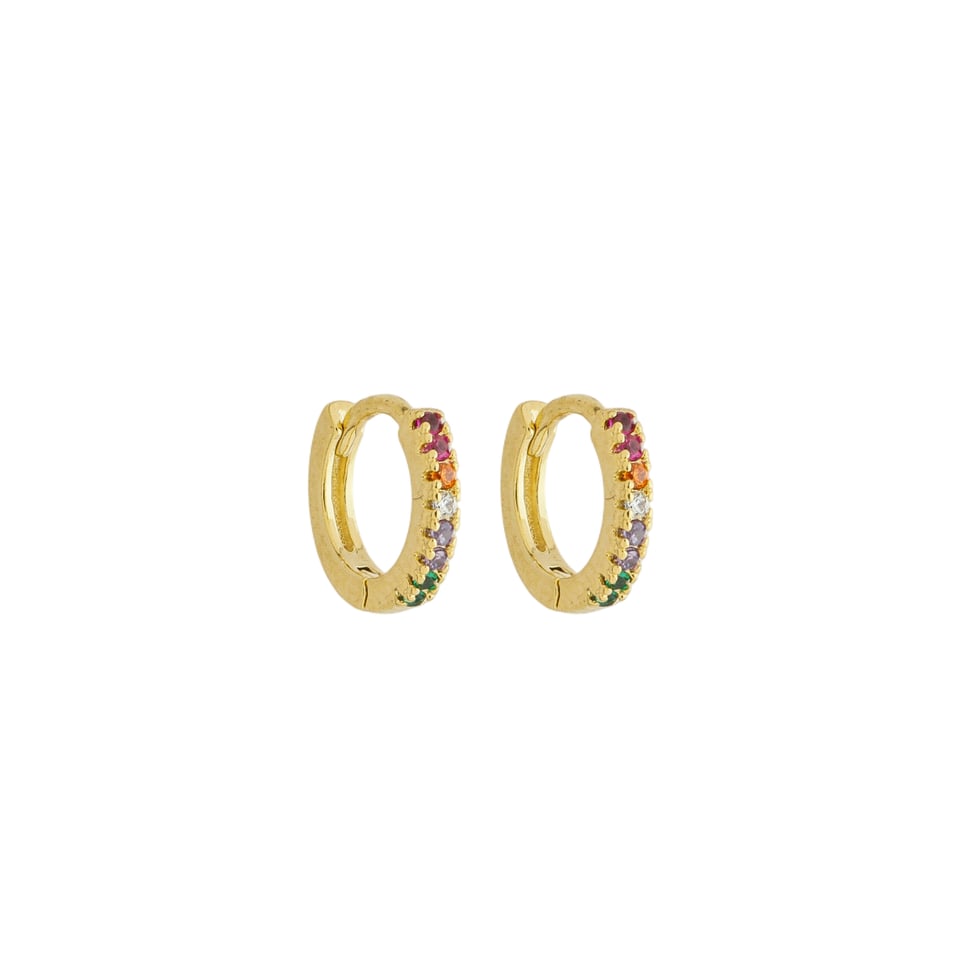 Brinco argola click com pedras 1,25mm zircônia colorida, medindo 1,1cm de diâmetro BANHO DE OURO
