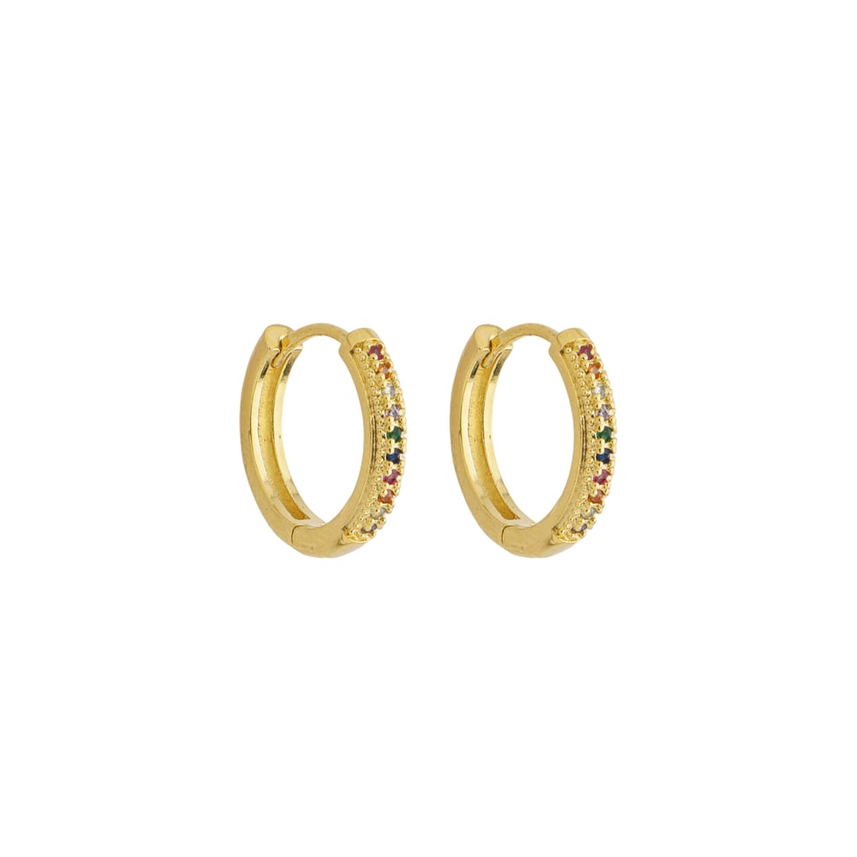 Brinco argola click com pedras 1,25mm zircônia colorida, medindo 1,8cm de diâmetro BANHO DE OURO