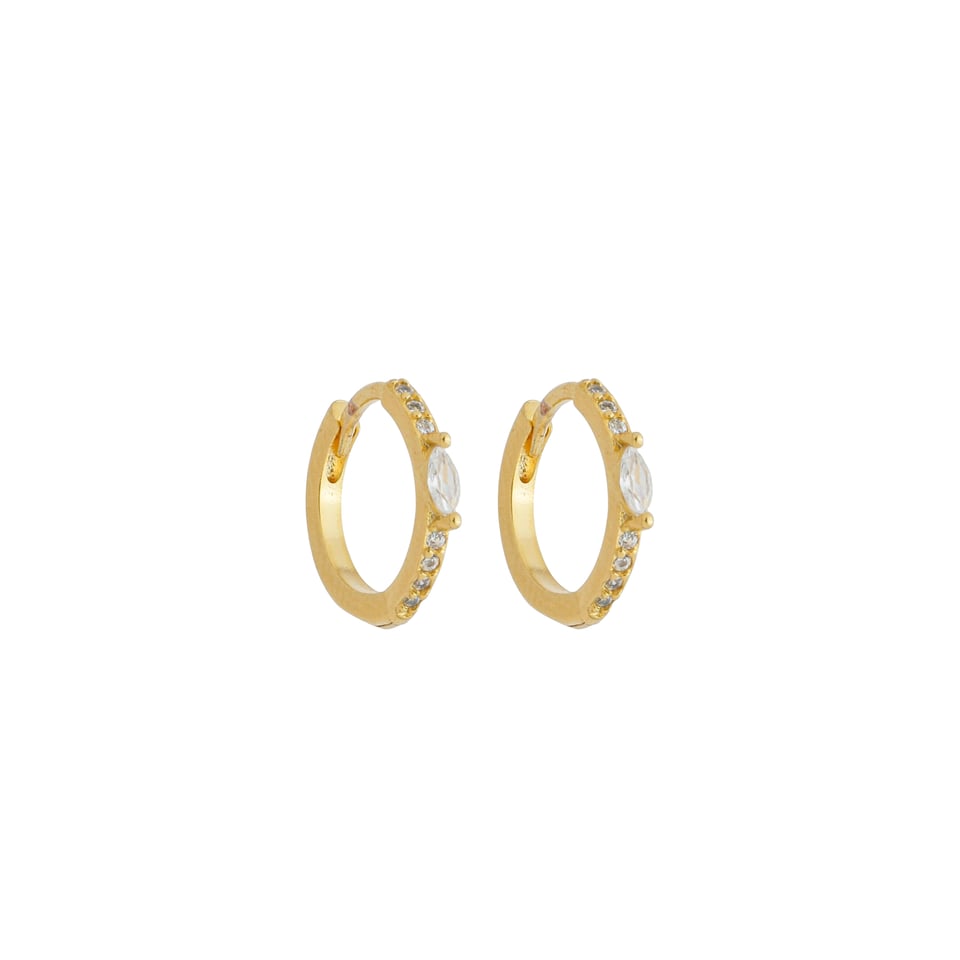 Brinco argola click com pedras 1mm zircônia e pedra 5x3mm navete, medindo 1,3cm de diâmetro BANHO DE OURO