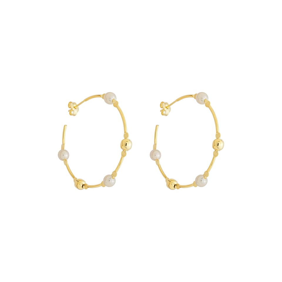Brinco argola com bola 4.5mm lisa e pérola 6mm, diâmetro de 4cm BANHO DE OURO