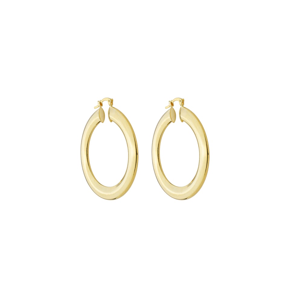Brinco argola tubo 7mm achatado, medindo 3,5cm de diâmetro BANHO DE OURO